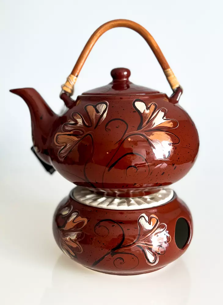 Czajnik z podgrzewaczem 1500 ml brązowy malowany