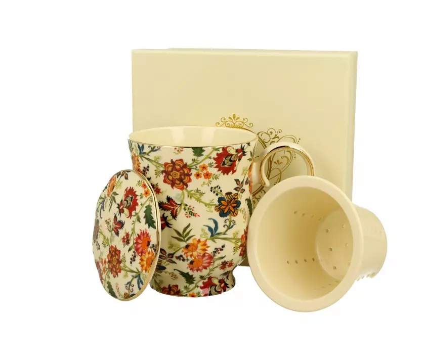 - Pięknie tłoczona porcelana ze złotymi wykończeniami