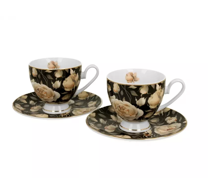 Kpl. 2 filiżanki ze spodkami ENGLISH ROSES BLACK- Golden Line