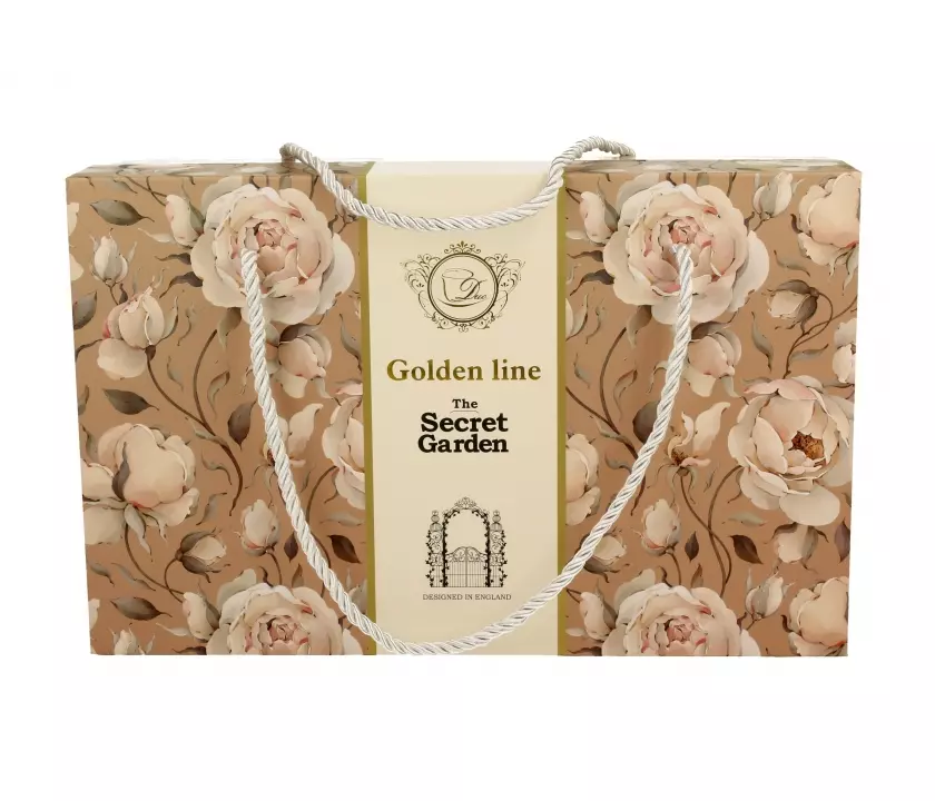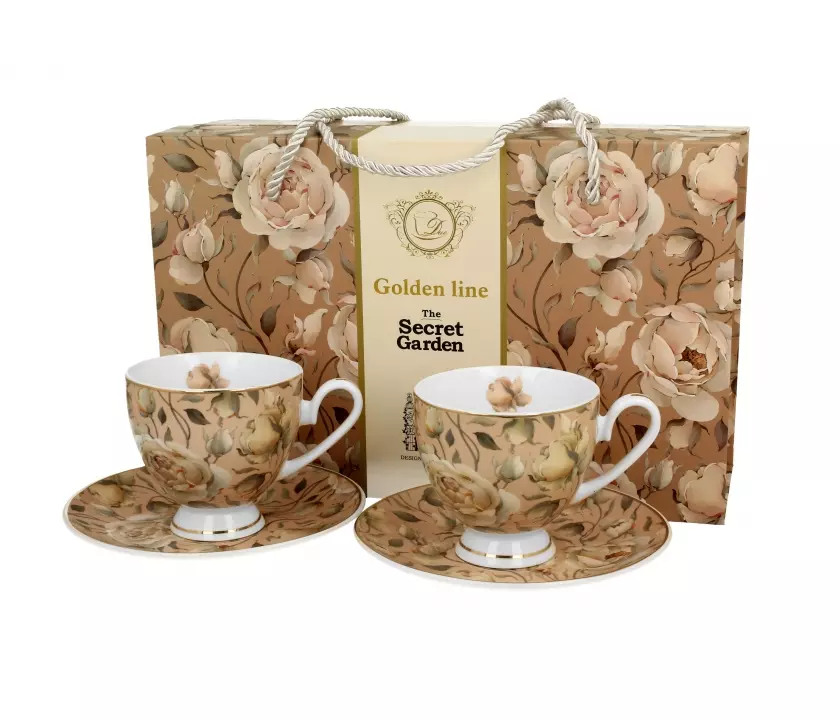 Filiżanki na prezent z pięknymi różami - Golden Line wchodząca w skład serii Golden Line, wykonany z porcelany New Bone China, charakteryzującej się elegancką i naturalną kremowo - białą barwą z delikatnym połyskiem, a także wyjątkową wytrzymałością.