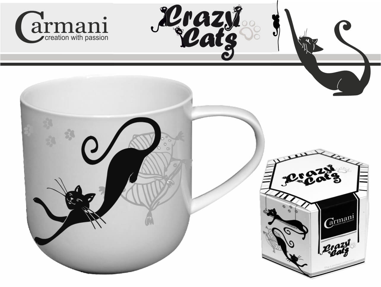 Uroczy porcelanowy kubek został motywem kotów z limitowanej kolekcji Crazy Cats Cats.