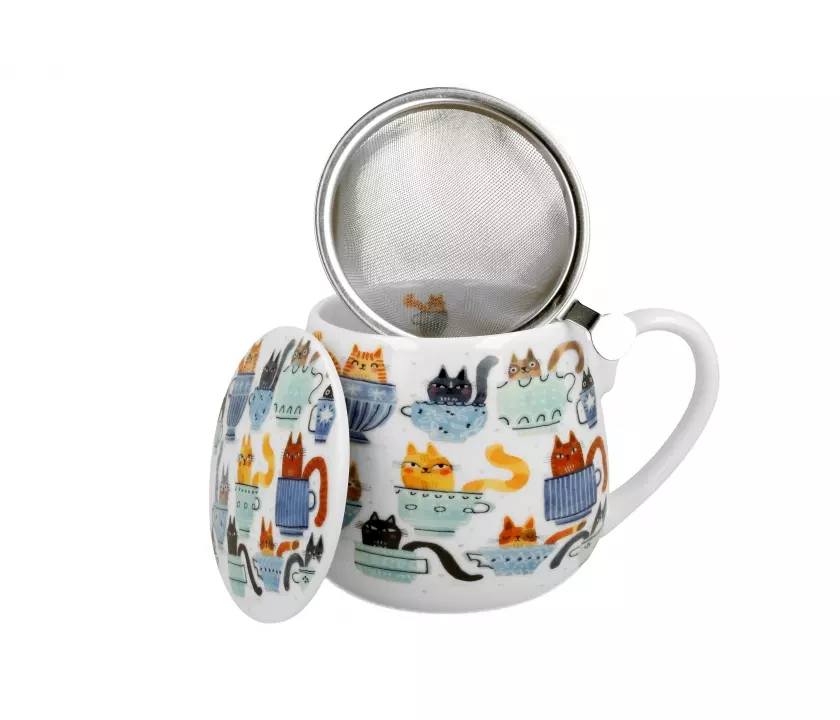 Kubek z sitkiem Koci Świat - koty w filiżankach