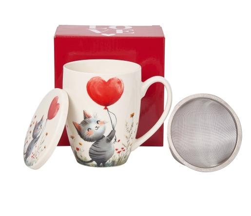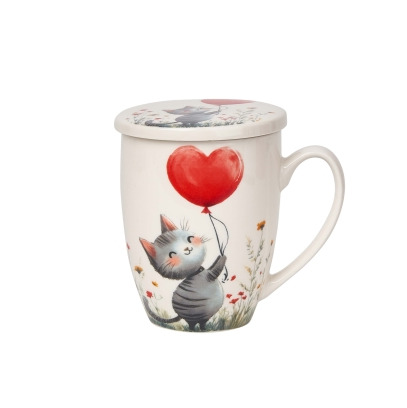 Kubek z zaparzaczem KOT Z BALONEM 0,35 L - Walentynki