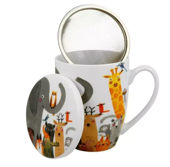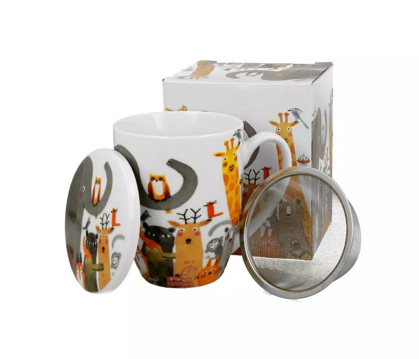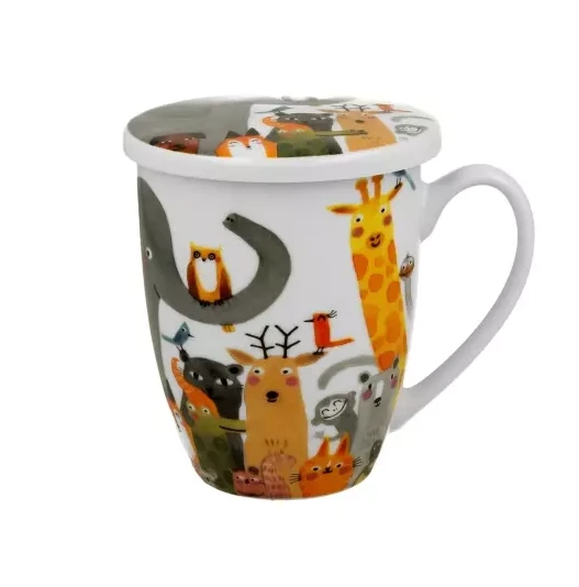Kubek z zaparzaczem Psi Świat ZWIERZĘTA wchodzący w skład serii Animals, wykonany z porcelany New Bone China, która charakteryzuje się naturalnym kremowo-białym kolorem z delikatnym połyskiem oraz wyjątkową wytrzymałością i trwałością, zachowując lekkość i finezję