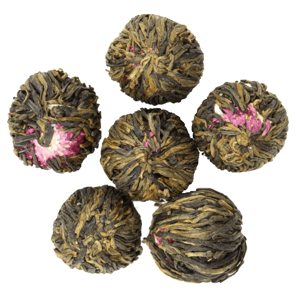 Liście czarnej herbaty ręcznie zwijane wraz z kwiatem owocu liczi. Bursztynowy kolor naparu wzbogacony o wizualny efekt przepięknie otwierającej się kuli. Zdecydowanie wyraźny smak w porównaniu do innych herbat kwitnących.