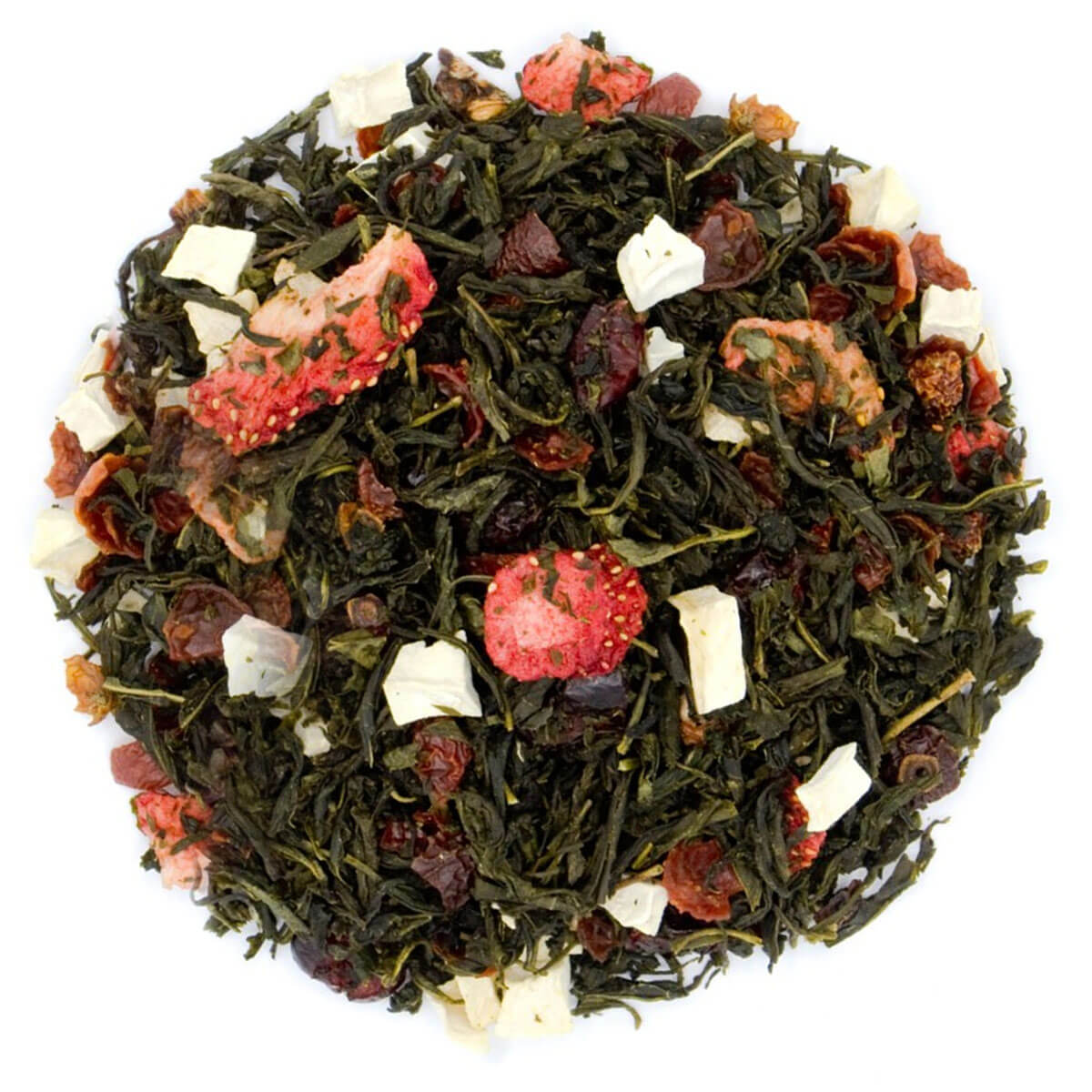 Zakochać się w tej kompozycji zielonej herbaty Yunnan wcale nie jest trudno, ponieważ uwiedzie Cię słodką truskawką z dodatkiem tropikalnej gravioli, a żurawina i dzika róża dodadzą temu związkowi charakteru. Herbata walentynkowa dla zakochanych.